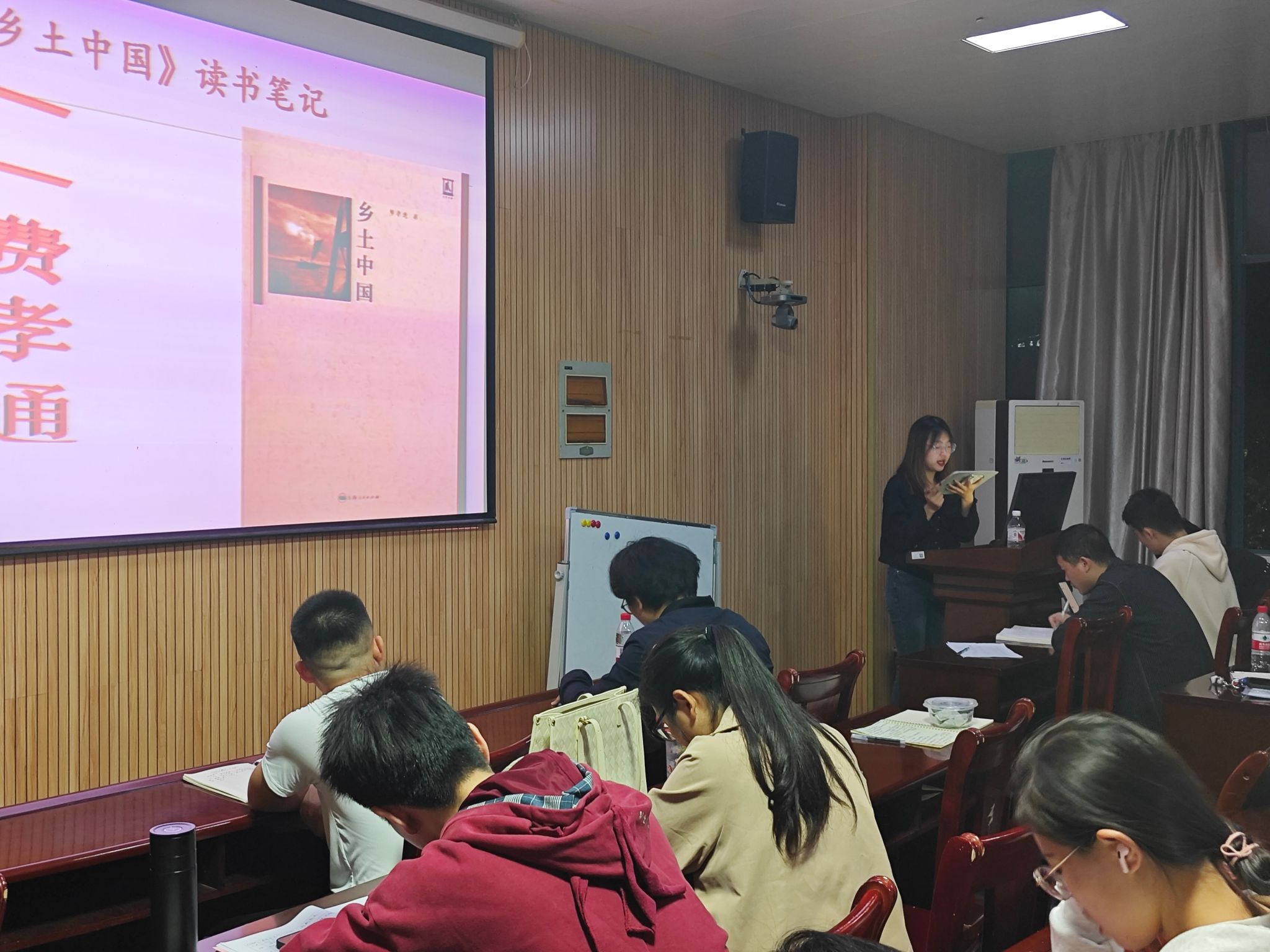 第二位分享者沈婉婷同学分享的也是《乡土中国》。她分享到本书从乡土本色、文字下乡、再论文字下乡、差序格局、维系着私人的道德、家族、男女有别、礼治秩序、无讼、无为政治、长老统治、地缘与血缘、名实的分离、从欲望到需要等方面展开叙述,生动全面地展现了乡土中国的面貌。